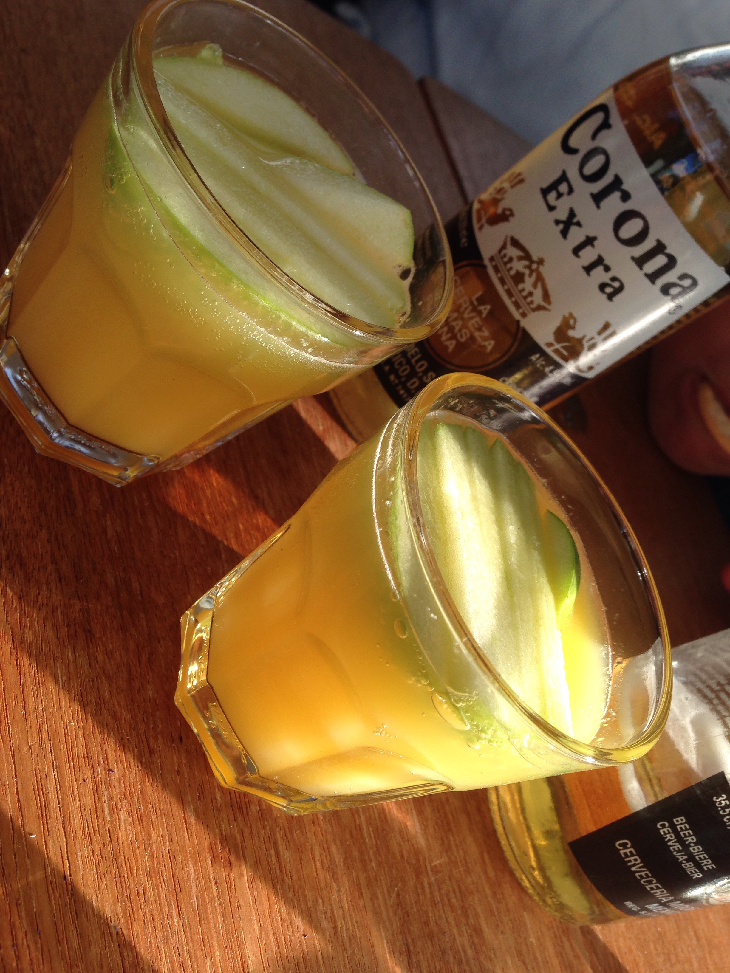 Drinken vid femtiden är helig ombord. Då återställer vi vätskebalansen, samt fyller på med salt och fett för att överleva till middagen. Plus att det är så otroligt trevligt! Just denna cocktail heter Katta3 och består av två delar apelsinjuice, en del fruktsoda, en squeeze lime
