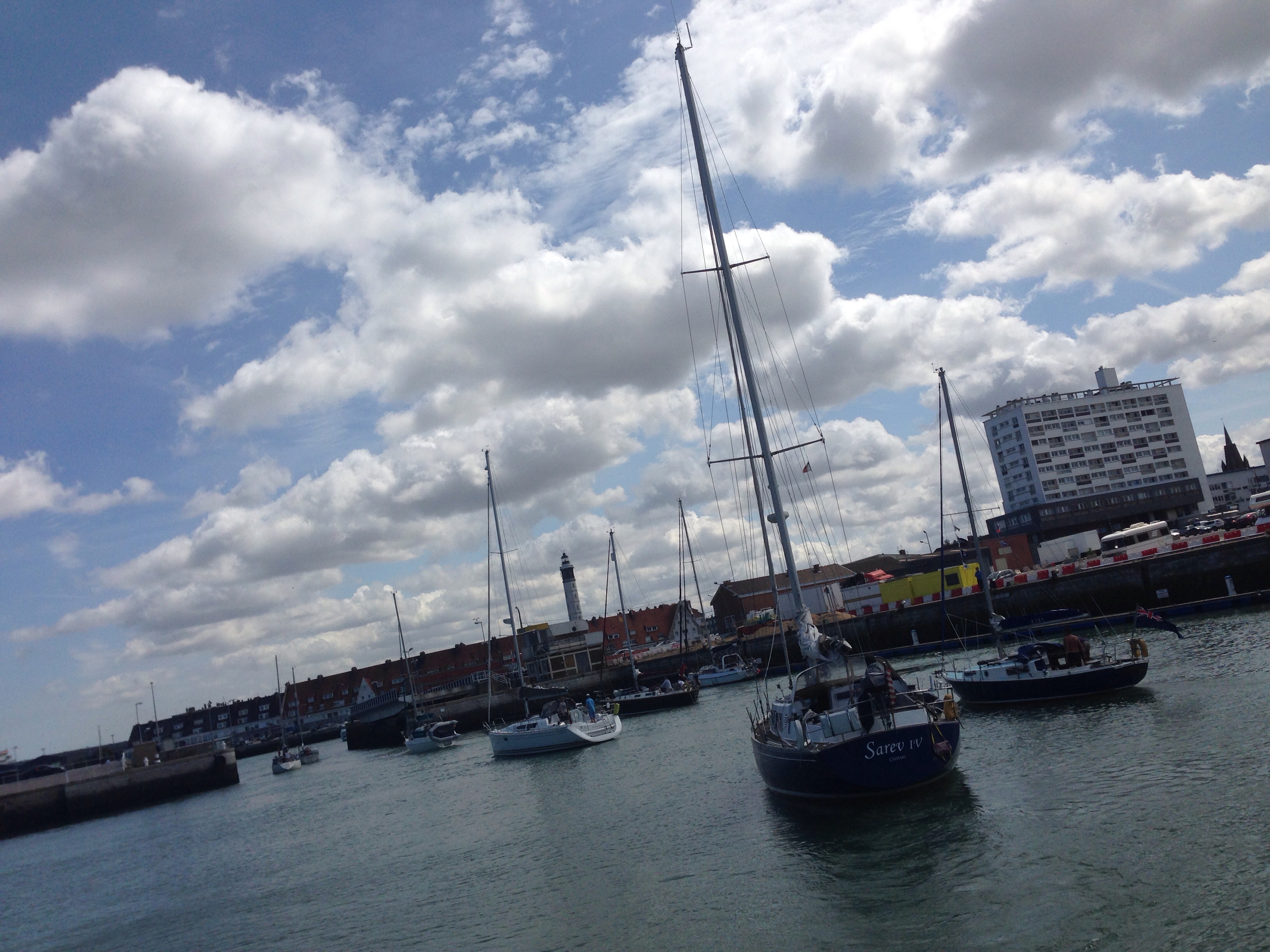 Till Calais kom vi till slut, i alla fall. Och här ligger vi nu och väntar, sedan fyra timmar tillbaka, på att bli inslussade i marinan.